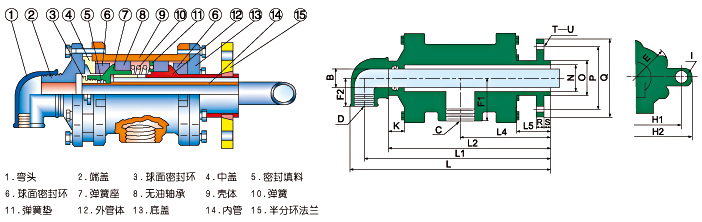 QS-XF型旋转接头 双向流通内管旋转式——半分环法兰连接