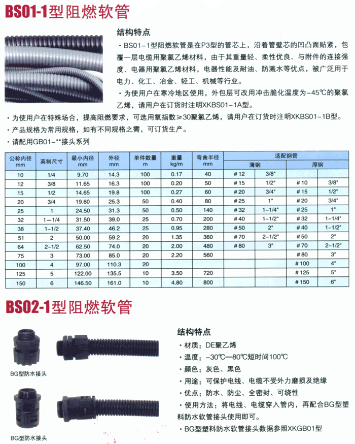 BS01-1型阻燃软管/BS02-1型阻燃软管