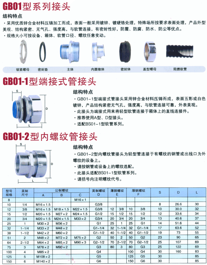 GB01型系列接头/GB01-1型端接式管接头/GB01-2型内螺